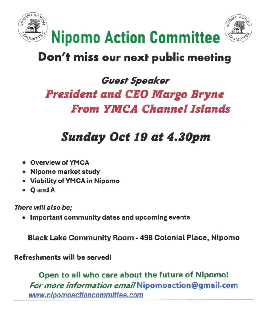 NAC Public Meeting: November 17th, 2023 at 5PM at the Black Lake Community Room 498 Colonial Pl, Nipomo.